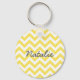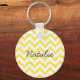 Hip and modern Trendy Chevron Keychain. This cool keychain features a chevron zig zag pattern in yellow and white. Add text to this design to give it a personal touch.