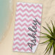 Trendy Chevron Pattern with name - pastel pink Beach Towel