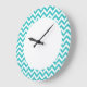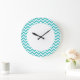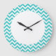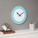 Hip and modern Trendy Chevron Wall Clock. This cool clock features a chevron zig zag pattern in turquoise and white. Add text to this design to give it a personal touch.