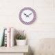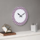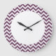 Hip and modern Trendy Chevron Wall Clock. This cool clock features a chevron zig zag pattern in purple and white. Add text to this design to give it a personal touch.