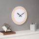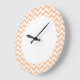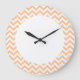 Hip and modern Trendy Chevron Wall Clock. This cool clock features a chevron zig zag pattern in coral and white. Add text to this design to give it a personal touch.