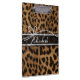 Trendy chic girly faux brown black leopard clipboard