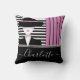 Trendy chic lady wearing a hat pillow. A very chic and elegant lady in black clothes and black hat. Black and white, black and dark pink stripes. Beautiful customizable handwritten typography with your name. Easily add your name and personalize the pillow.