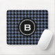 Trendy Classic blue grey houndstooth with monogram Mouse Pad