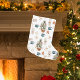 Create a cozy Christmas scene with this rustic-style holiday stocking featuring a charming pattern of potted Christmas trees, gingerbread cookies, wrapped presents, snowflakes, and warm winter mugs. Designed in soft watercolor textures and warm neutral tones, this festive stocking brings a classic country Christmas look to any fireplace mantel.