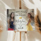 Congratulations, graduate! Let this trendy and elegant sign be a symbol of your hard work and accomplishments. With two personal photographs of the graduate, a stylish white faded overlay, and a golden graduation cap, this sign is the perfect way to celebrate your big day. Customize it with your class year, name, and school for a personalized touch. You deserve to be recognized for your dedication and achievement. Here's to your amazing future ahead!