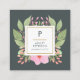 Trendy Cute Watercolor Pink Flowers Monogram Square Business Card