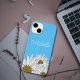 Trendy floral device case, with a white daisies design on a blue background. With cute script typography white lettering, you can personalize with your own text. A great way to add a country touch to your electronics!