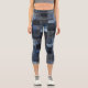 Trendy Denim Patchwork,Blue Tone,Custom Text Logo Capri Leggings