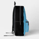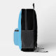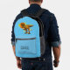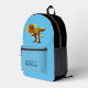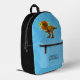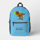 On this delightful back pack is an open mouthed dinosaur with sharp razor teeth waiting for battle with a sword in his little hands. Perfect for any kid who loves the dinosaur spirit. Can be personalized on the front pocket with a name to make it uniquely your own.