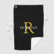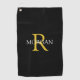Trendy DIY Monogram & Name, Gold/White Text, Black Golf Towel