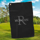 Trendy DIY Monogram & Name, Grey Text, Black Golf Towel