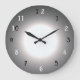 A dramatic clock design with a round illuminated centre of silver grey. White and black numerals and clock hands in black complete this atmospheric design. Easy change to from square to round or add a frame.