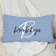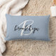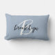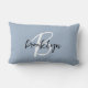 Trendy Dusty Blue Black White Script Monogram Lumbar Pillow