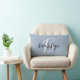 This elegant personalized lumbar pillow features a monogram and first name in modern black and white script on a trendy dusty blue background.