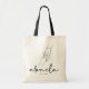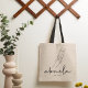 Cute grandma tote bag featuring a line drawing of a child holding their grandmothers hand, the title 'ABUELA' in a modern script font, and the year she became a grammy.
