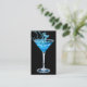 A modern events bartender business card featuring a long stem glass filled with an exotic blue liquid. Personalize by adding the name of the caterer as though it were etched into the glass.