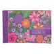 A bold, floral design with colorful shades of purples and pinks with a fun color block to add your name or any text. The crazy flower pattern has a variety of colors.