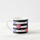 Trendy Floral Black & White Stripes Personalized Espresso Cup