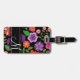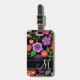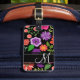 Trendy Floral Pattern Hot Pink and Black Monogram Luggage Tag