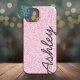 Trendy Floral Pattern with name - pink and gray Case-Mate iPhone Case