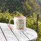 This "The Future is Vegan" mug features a quote with retro flowers.