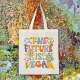 This "The Future is Vegan" tote bag features a quote with trendy retro flowers.