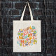 This "World peace starts in the kitchen" tote bag features a quote with flowers.