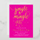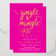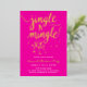 Celebrate the season in style with our trendy Jingle and Mingle invitation, featuring a playful, modern script in bold on a striking hot fuchsia pink background. Perfect for your annual Christmas cocktail party or New Year’s celebration, or even for a Christmas in july party, this invitation is adorned with real gold foil cocktail glass scribbles, adding a touch of sparkle and playfulness. Details are presented in clean, simple white typography for effortless readability. This youthful invitation blends holiday cheer with contemporary elegance, making your guests feel welcome and excited. Ideal for creating memorable seasonal gatherings with a chic, celebratory vibe. Discover the color variations available!