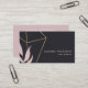Abstract art business cards featuring black paint strokes with a gold geometric element and blush pink leaves.