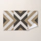 Hand towel with geometric white and brown faux burlap design.