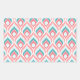 Trendy girly peacock feather shapes retro geometric pattern, soft pink, blue, red, white colours, image print