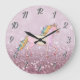 Trendy Glitter Bokeh , Unicorn Large Clock