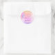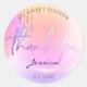 Trendy Glitter Holographic drips glam Thank you Classic Round Sticker featuring ombre pink, orange, yellow and pastel purple modern gradients with script calligraphy thank you faux foil text and girly sparkles.