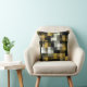 Trendy Gold Blue Black White Abstract Plaid Throw Pillow