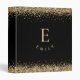Trendy Gold Glitter Monogram Name Initial Black 3 Ring Binder