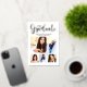 Celebrate your graduate with this fun and trendy graduation party invitation featuring "Graduate" in gold foil bouncy script on a clean white background, paired with a four-photo layout showcasing one large portrait and three smaller photos. The back reads "Let's Celebrate" in playful black script with event details on white. All text is fully customizable, including the graduate's name, school, class year, and event details.