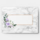Create the perfect wedding invitation set with this pretty, elegant envelope design, featuring lilac lavender purple color watercolor roses and flowers, on the flap and on the front, with a faux Carrera marble background, both inside and out! To finish it off, a a faux yellow gold border around the address box. Part of an invitation suite. Copyright Elegant Invites, all rights reserved.