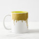 Trendy Gold Metallic Drips Monogram Two-Tone Coffee Mug