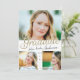 Trendy Gold Script Overlay Three Photo Graduation Announcement