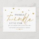 Adorable and cute baby shower postcard invitation features sprinkled stars along the top and the word "twinkle" in gold with modern serif typography. Matching items in this collection.
