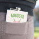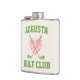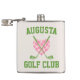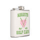 This customizable flask features two golf clubs in front of a checkered heart with the text "Augusta Golf Club". The text and colors for the graphic are all editable on this design.
