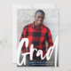 Celebrate your high school or college graduate with this vertical one-photo graduation announcement. The modern script "grad" on the front in white is perfect for a trendy grad. The backer is charcoal gray, but the color can be changed to any school color by clicking "customize."