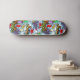 Featuring a graffiti effect pattern on a light blue background with various cartoon spray cans and graffiti effect text saying "old school", "hip hop" and "Music", this colorful board will be sure to get some attention.