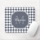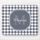 Trendy Gray and White Checked Monogrammed Name Mouse Pad