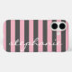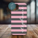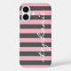 Trendy Gray Blush Pink Striped Pattern Script name Case-Mate iPhone Case