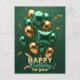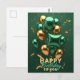 Trendy Green and Gold Balloon Birthday Celebration Postcard