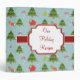 Trendy Green Christmas Tree Recipe binders with Christmas baubles, gifts and trees, snowmen,birds, bows and snowflakes. Perfect for any use. Shown here as a recipe binder.