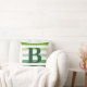 Stripes in different shapes of green. With monogram personalized throw pillow in fresh colors. Trendy Home Decor for your living room.