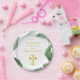 Trendy Greenery And Gold Cross Confirmation Paper Plates